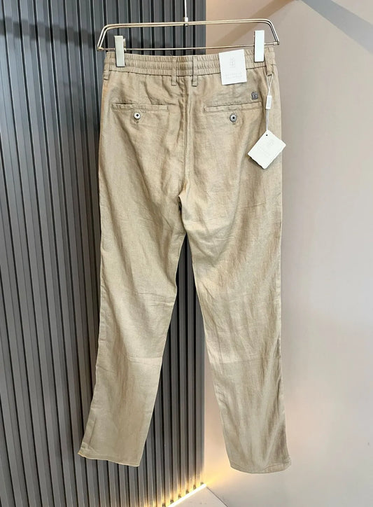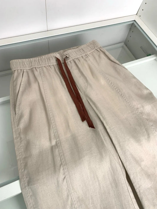 بنطلون كاجوال مستقيم واسع الساق بخصر مطاطي على الطراز الإيطالي صيفي من الكتان بنسبة 100%