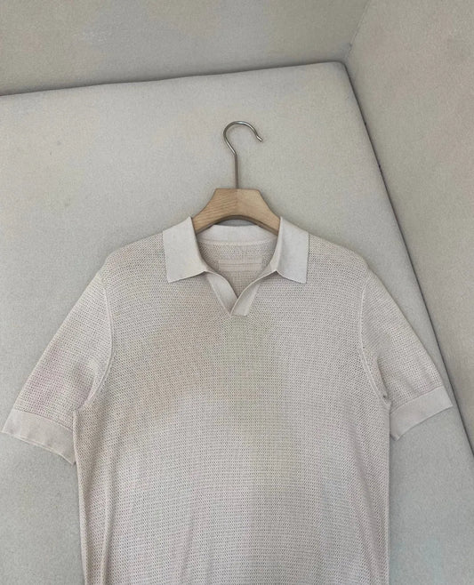 قميص بولو إيطالي قديم من القطن الخالص بأكمام قصيرة وياقة Haiou مجوفة من 25ss