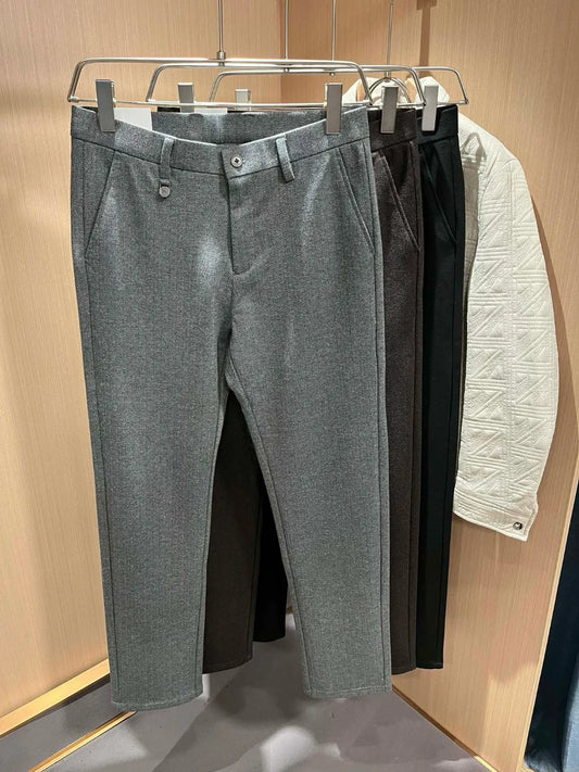 بنطلون كاجوال BC old money wind 25ss slim-fit مطرز صغير مستقيم بسيط بلون سادة