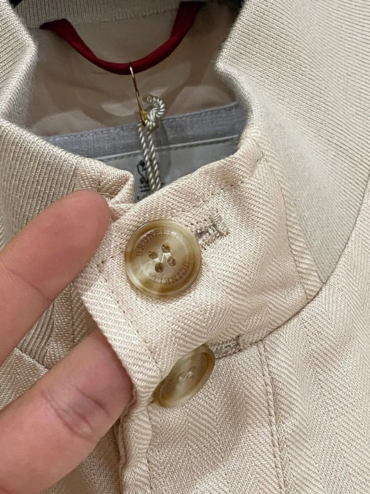 سترة كتان كاجوال عالية الجودة بي سي إيطاليا 25ss، طراز قديم، بياقة واقفة، مناسبة للأعمال
