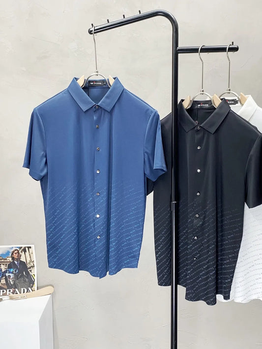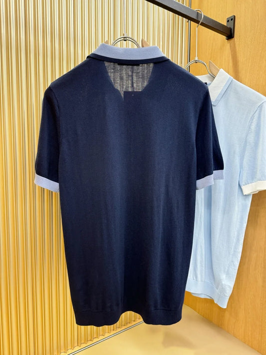 قميص بولو كاجوال بأكمام قصيرة من Kiton Italian 25ss مصنوع من مزيج القطن والحرير
