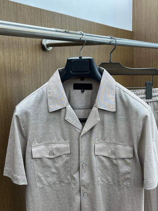 قميص كيتون إيطالي كاجوال بأكمام قصيرة وياقة دائرية 25ss