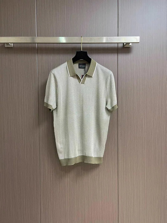 قميص بولو كاجوال بأكمام قصيرة وياقة دائرية من حرير التوت والكشمير المعين LP 25ss