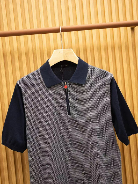 قميص بولو محبوك بأكمام قصيرة وسحاب من Kiton بلون متباين من Old Money Wind