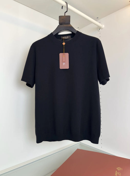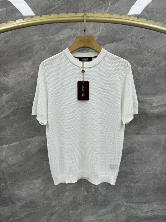 قميص بولو LP 25ss مخطط من الكشمير والحرير التوتي بأكمام قصيرة محبوك