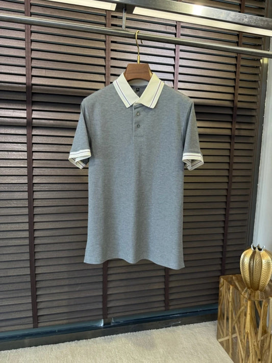 BC Italian letter badge contrasting pearl cotton lapel polo shirt