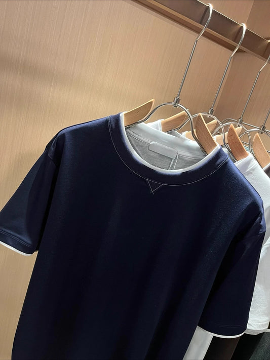 BC Italy 25ss long-staple cotton breathable fake two-piece casual old money wind short-sleeved T-shirt
