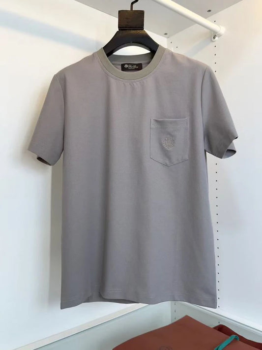 LP Italian solid color pocket embroidery old money wind round neck short sleeve casual T-shirt