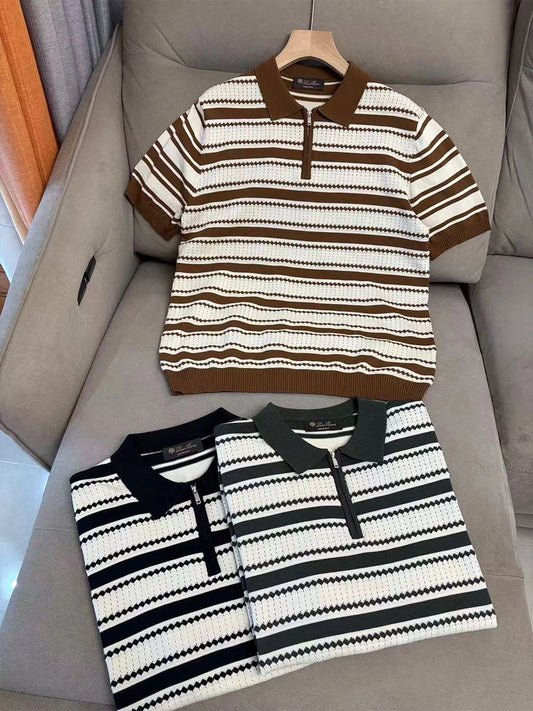 LP 25ss striped cashmere mulberry silk lapel short-sleeved knitted POLO shirt