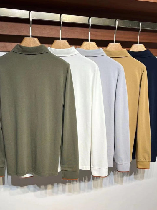 LP Casual Pearl Cotton Lapel Long Sleeve Men's POLO Shirt