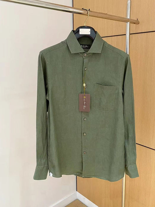 LP Italian Pocket Solid Color Pure Linen Long Sleeve Breathable Shirt