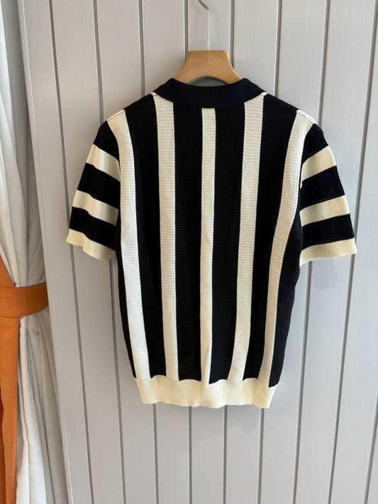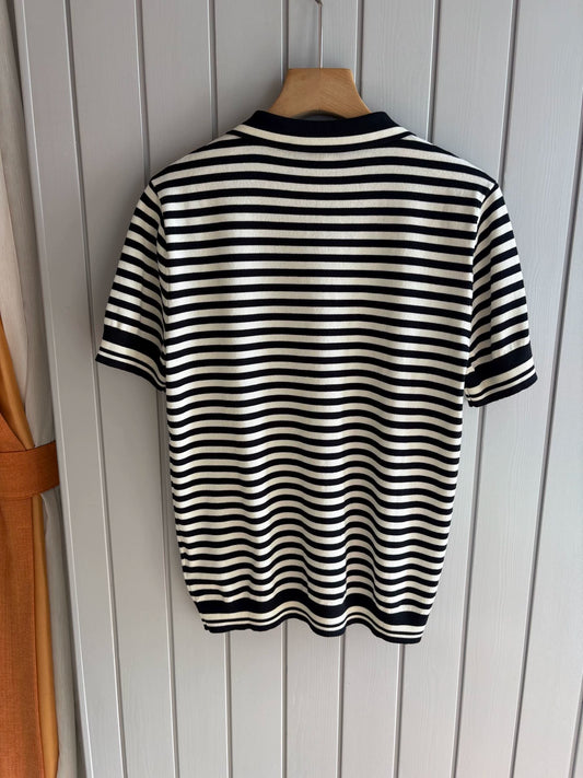 LP Italy 25ss striped V lapel knitted sweater men's casual short-sleeved polo shirt