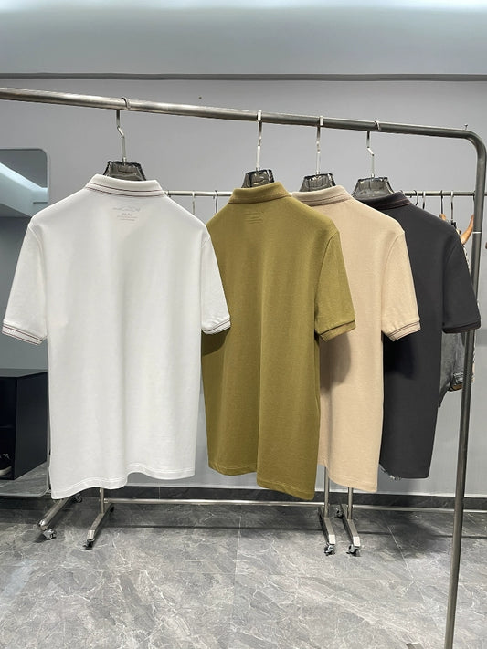 LP Italy 25ss simple pearl cotton men's casual lapel polo shirt short sleeve