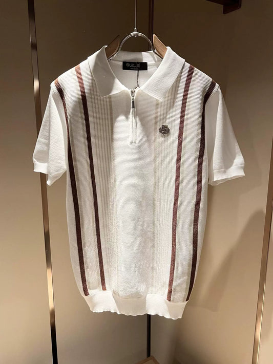 LP Italy 25ss Men's Casual Lapel Zipper Knitted Short Sleeve Polo Shirt